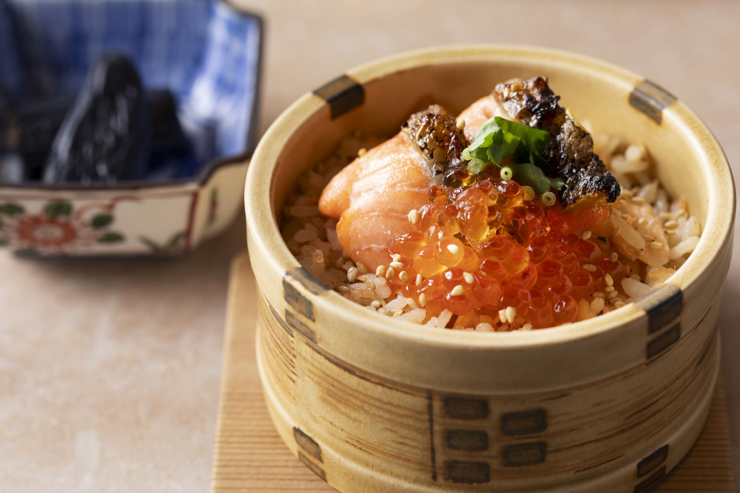 宮城県産ひとめぼれを使用したはらこ飯 三つ葉 煎り胡麻/仙台麩と玉葱の味噌汁/仙台長茄子漬